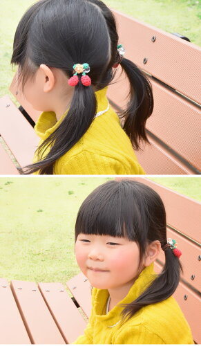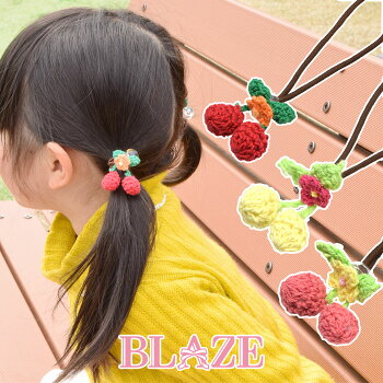 編みパーツ ヘアゴム さくらんぼ 2個セット BLAZE ヘアアクセサリー キッズ 子供 フルーツ さくらんぼ チェリー 花 フラワー ポンポン 苺 いちご